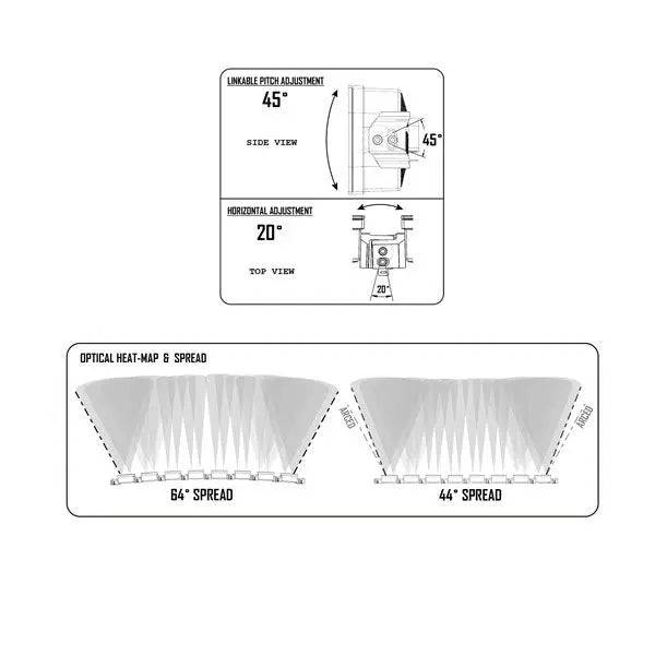 - Driving/Combo: Maximum trail coverage in a single light. The Driving/Combo pattern is equipped with both Wide Driving (44°) and spot (6°) optics to provide you with a smooth blend of light for both near field applications and distance (Lighting Zone 3)