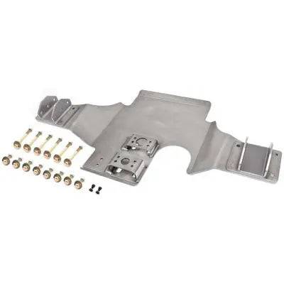 Supplied mounting brackets are 1/4" thick 1010 steel and all necessary grade 8 mounting hardware is included with top locking nuts. Crossmembers are shipped unpainted, and should be painted or powder coated before being installed.